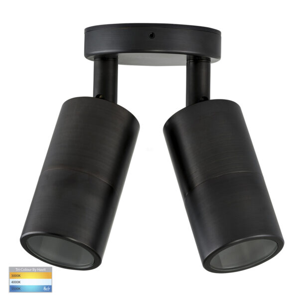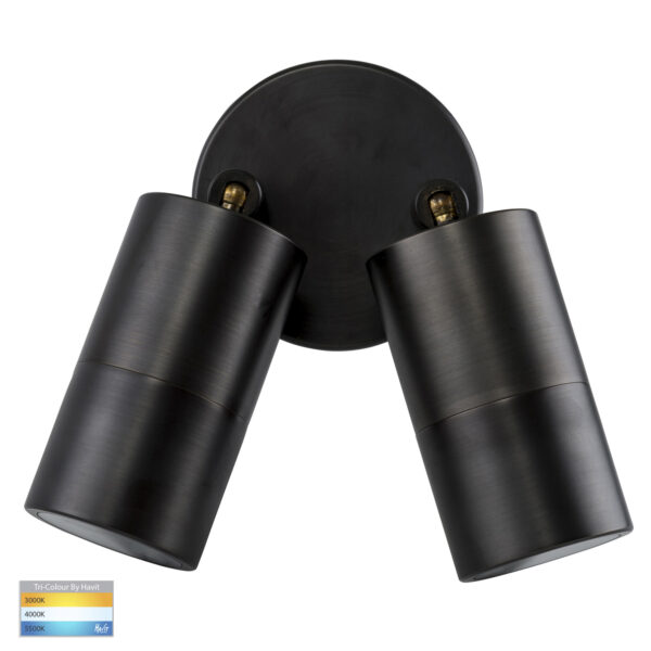 HV1397GU10T – Tivah Antique Brass TRI Colour Double Adjustable Wall Pillar Lights