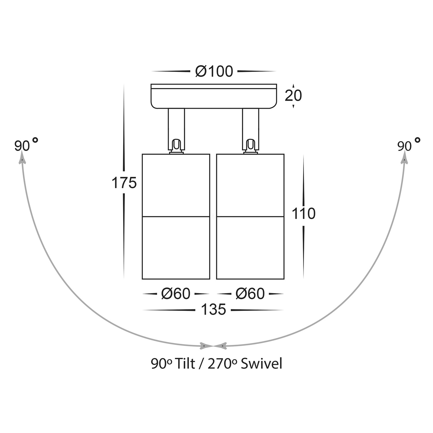 90° Tilt & 270° Swivel